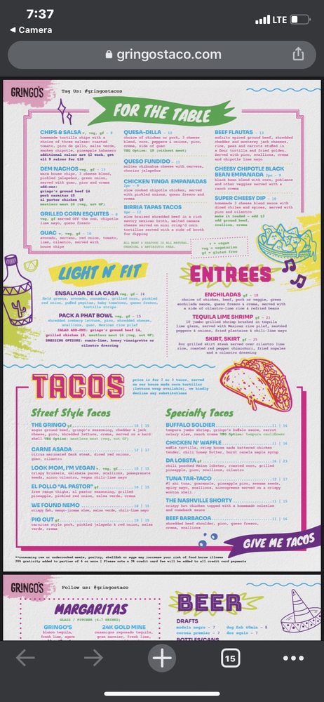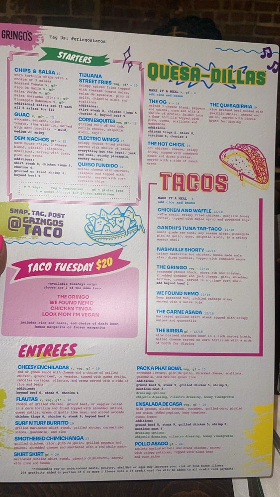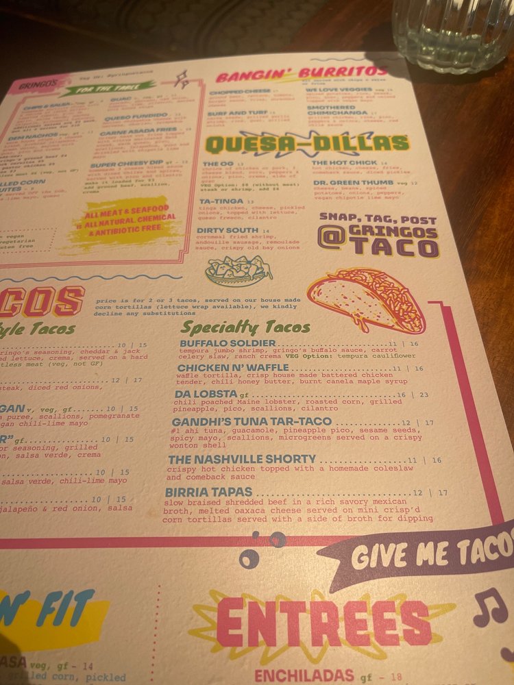 Introducing their menu, Gringo's features a delightful array of dishes that cater to all tastes, including ample vegan and vegetarian options. Customer favorites like the flavorful birria tacos and refreshing margarita flights ensure there is something for everyone. Diners rave about the Huevos Rancheros and Breakfast Burrito, offering a perfect start to your day.